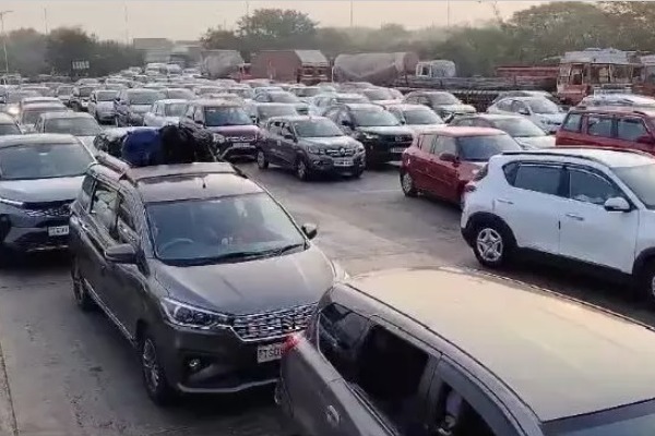 • టోల్ గేట్ల వద్ద కిలోమీటర్ల మేర నిలిచిన ట్రాఫిక్