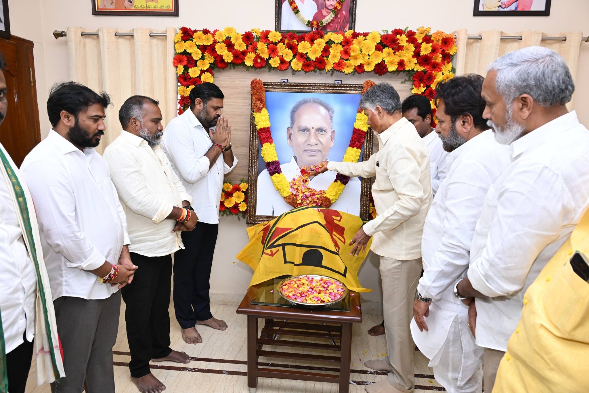 ఎన్టీఆర్ రాజు కుమారుడు, టీడీపీ మీడియా కో-ఆర్డినేటర్ శ్రీధర్ వర్మ నివాసానికి వెళ్లిన ముఖ్యమంత్రి, ఎన్టీఆర్ రాజు మృతి పట్ల తీవ్ర సంతాపం వ్యక్తం చేశారు. ఎన్టీఆర్ రాజు చిత్రపటానికి పూలమాల వేసి నివాళులర్పించారు. అనంతరం శ్రీధర్ వర్మ కుటుంబ సభ్యులను ఓదార్చి వారికి ధైర్యం చెప్పారు. ముఖ్యమంత్రి వెంట మంత్రి అనగాని సత్యప్రసాద్, ఎమ్మెల్యేలు అమర్నాథ్, పులివర్తి నాని, స్థానిక నేతలు ఉన్నారు.