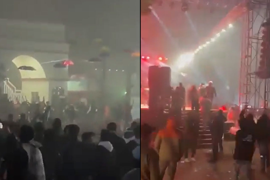 • వేదికను ముట్టడించి రాళ్లు, ఇటుకలతో దాడికి దిగిన అతివాద మూకలు