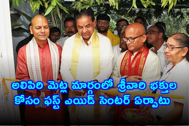 అలిపిరి మెట్ల మార్గంలో వచ్చే భక్తుల ఆరోగ్య భద్రతను దృష్టిలో ఉంచుకుని తిరుమల నుంచి తిరుపతికి వెళ్లే దిగువ ఘాట్ రోడ్డులోని ఏడో మైలు వద్ద ఏర్పాటు చేసిన ఫస్ట్ ఎయిడ్ సెంటర్ను టీటీడీ ఛైర్మన్ బీఆర్ నాయుడు ప్రారంభించారు. ఈ కార్యక్రమంలో టీటీడీ ఈవో అనిల్ కుమార్ సింఘాల్, అదనపు ఈవో సి.హెచ్. వెంకయ్య చౌదరి పాల్గొన్నారు.