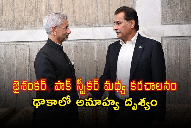 S Jaishankar: జైశంకర్, పాకిస్థాన్ స్పీకర్ మధ్య కరచాలనం... ఢాకాలో అనూహ్య దృశ్యం