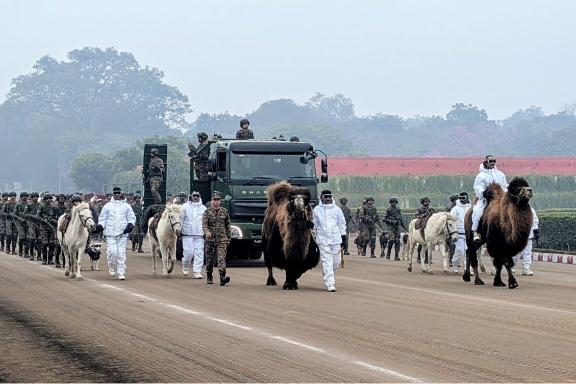 లడఖ్లోని శీతల ఎడారులలో కార్యకలాపాల కోసం ఇటీవల చేరిన బాక్ట్రియన్ ఒంటెలు ఈ కవాతులో నాయకత్వం వహించనున్నాయి. విపరీతమైన చలి, 15,000 అడుగుల కంటే ఎత్తులో అసాధారణ పరిస్థితుల్లో ఈ ఒంటెలు 250 కిలోల వరకు బరువును మోయగలవు. అదే సమయంలో తక్కువ నీరు, ఆహారంతో ఎక్కువ దూరం కూడా ప్రయాణించగలవు.