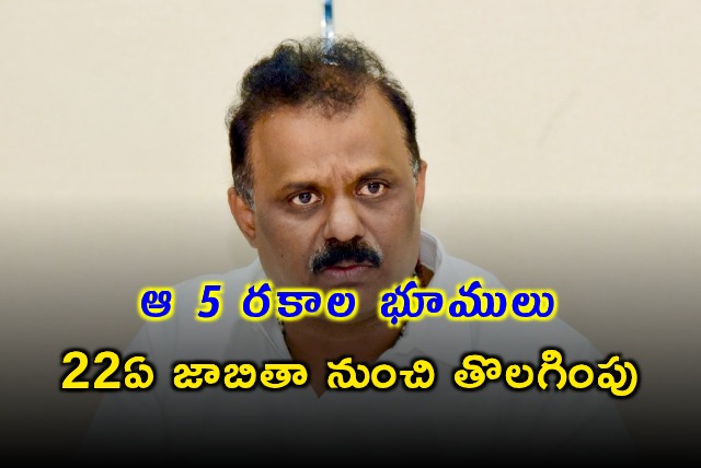 - రిజిస్ట్రేషన్ చట్టంలోని 22ఏ నిషిద్ధ జాబితా నుంచి 5 రకాల భూముల తొలగింపు