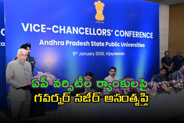 జాతీయ స్థాయిలో విశ్వవిద్యాలయాల పనితీరును తెలిపే ఎన్ఐఆర్ఎఫ్ (ఎన్ఐఆర్ఎఫ్) ర్యాంకింగ్స్లో ఆంధ్రప్రదేశ్ వెనుకబడి ఉందని, ఈ పరిస్థితిని మెరుగుపరిచేందుకు వైస్ ఛాన్సలర్లు కృషి చేయాలని రాష్ట్ర గవర్నర్ ఎస్. అబ్దుల్ నజీర్ పిలుపునిచ్చారు. 2025 ర్యాంకింగ్స్ ప్రకారం రాష్ట్రంలోని 25 ప్రభుత్వ విశ్వవిద్యాలయాల్లో కేవలం ఆంధ్ర విశ్వవిద్యాలయం మాత్రమే టాప్-50లో, ఆచార్య నాగార్జున విశ్వవిద్యాలయం టాప్-100లో స్థానం సంపాదించాయని, ఇది ఆందోళన కలిగించే విషయమన్నారు. విజయవాడలోని నోవాటెల్ హోటల్లో పబ్లిక్ యూనివర్సిటీల వైస్ ఛాన్సలర్ల సమావేశానికి ఆయన అధ్యక్షత వహించి ప్రసంగించారు.