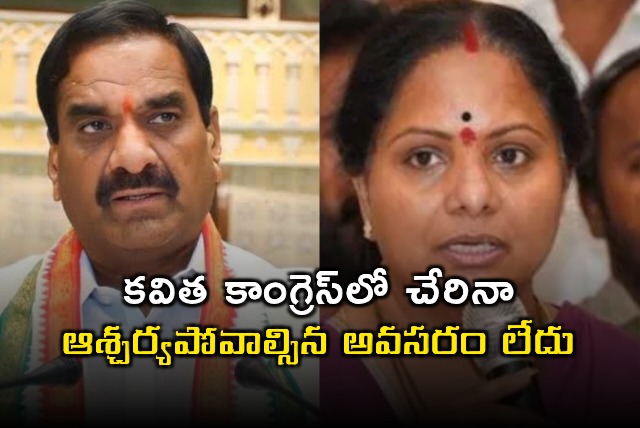 తెలంగాణ జాగృతి అధ్యక్షురాలు కల్వకుంట్ల కవితపై కాంగ్రెస్ పార్టీ ఎమ్మెల్యే మల్రెడ్డి రంగారెడ్డి ఆసక్తికర వ్యాఖ్యలు చేశారు. కవిత కాంగ్రెస్ పార్టీలో చేరినా ఆశ్చర్యపోవాల్సిన అవసరం లేదని అన్నారు. గతంలో దానం నాగేందర్, కడియం శ్రీహరి వంటి నాయకులు కాంగ్రెస్ పార్టీలోకి వస్తారని అనుకోలేదని, కానీ వారు వచ్చారని చెప్పారు. కవిత కూడా కాంగ్రెస్ పార్టీలోకి వస్తే ఆశ్చర్యపోవాల్సిన అవసరం లేదని ఆయన పేర్కొన్నారు.