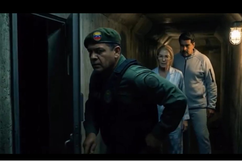 మదురో తన నివాసంలోని టెర్రస్పై చేతిలో గ్లాసు పట్టుకుని ఏదో తాగుతూ ఆలోచిస్తుంటాడు. అదే సమయంలో ఆయన భార్య అక్కడకి వస్తుంది. అప్పుడు అమెరికా సైన్యానికి చెందిన విమానాలు అక్కడకు చేరుకుని, వారి నివాసాన్ని చుట్టుముట్టినట్లుగా వీడియోలో ఉంది. విమానంలోని సిబ్బంది లక్ష్యాన్ని చేరుకున్నట్లు ట్రంప్కు చెబుతున్నట్లు కూడా ఉంది. ఆ తర్వాత బాంబులు జారవిడుస్తారు.