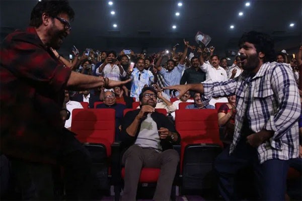ఈవెంట్ మధ్యలో దర్శకుడు అనిల్ రావిపూడి సరదాగా డ్యాన్స్ చేయడం ప్రారంభించగా, ఏమాత్రం ఆలస్యం చేయకుండా వెంకీ మామ కూడా ఆయనతో జత కలిశారు. తన మార్క్ హావభావాలతో, స్టైల్తో వెంకీ వేసిన స్టెప్పులకు అభిమానులు, ప్రేక్షకుల నుంచి భారీ స్పందన వచ్చింది. ఫ్యామిలీ హీరోగా పేరొందిన వెంకీ నుంచి ఇలాంటి ఎనర్జిటిక్ డ్యాన్స్ చూడటంతో ఫ్యాన్స్ ఫుల్ ఖుషీ అయ్యారు. వెంకటేశ్ డ్యాన్స్ చూసి ఫిదా అయిన చిరు కూడా తన సీట్లో నుంచే హుషారుగా హుక్ స్టెప్ వేయడం అందరినీ ఆకట్టుకుంది.