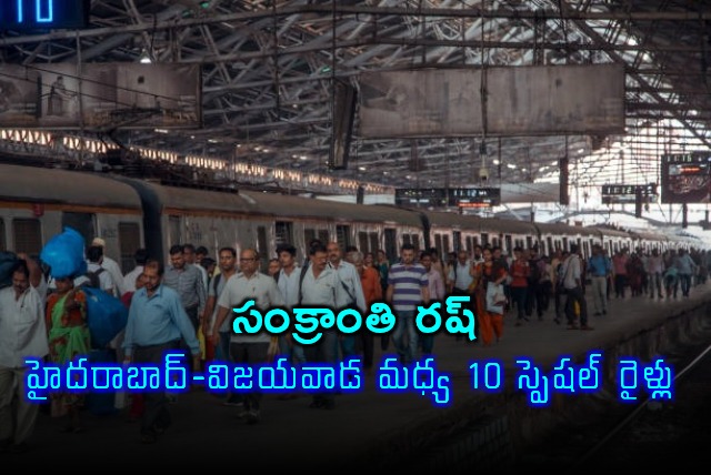సంక్రాంతి పండుగ సందర్భంగా ప్రయాణికుల రద్దీని తగ్గించేందుకు దక్షిణ మధ్య రైల్వే కీలక నిర్ణయం తీసుకుంది. పండగ కోసం సొంత ఊళ్లకు వెళ్లేవారి సౌకర్యార్థం హైదరాబాద్ - విజయవాడ మధ్య మొత్తం 10 ప్రత్యేక రైళ్లను నడపనున్నట్లు శనివారం ఒక ప్రకటనలో తెలిపింది. ఈ రైళ్లు పండగకు ముందు, తర్వాత రోజుల్లో రాకపోకలు సాగించనున్నాయి.