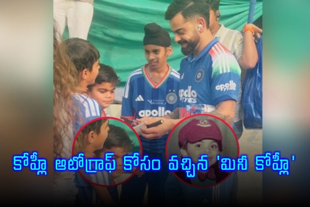 ఈ పోలికను గమనించిన నెటిజన్లు ఆశ్చర్యపోతూ పోస్టులు పెట్టడం ప్రారంభించారు. 'మినీ కోహ్లీ దొరికేశాడు' అంటూ పలువురు కామెంట్లు చేస్తున్నారు. కోహ్లీ, ఆ చిన్నారి ఫొటోలను పక్కపక్కన పెట్టి పోలుస్తూ షేర్ చేస్తున్నారు. దీంతో ఈ విషయం నెట్టింట హాట్ టాపిక్‌గా మారింది. మరోవైపు కోహ్లీ మాత్రం ఇవేమీ గమనించకుండా చిరునవ్వులు చిందిస్తూ తన అభిమానులకు ఆటోగ్రాఫ్‌లు ఇవ్వడంలో నిమగ్నమయ్యాడు. ఇక‌, ప్రస్తుతం కోహ్లీ, రోహిత్ శర్మ కేవలం వన్డే ఫార్మాట్‌లో మాత్రమే ఆడుతుండటం తెలిసిందే. దీంతో ఇవాళ్టి నుంచి కివీస్‌తో జ‌రిగే సిరీస్‌పై అభిమానుల్లో భారీ అంచనాలు నెలకొన్నాయి.