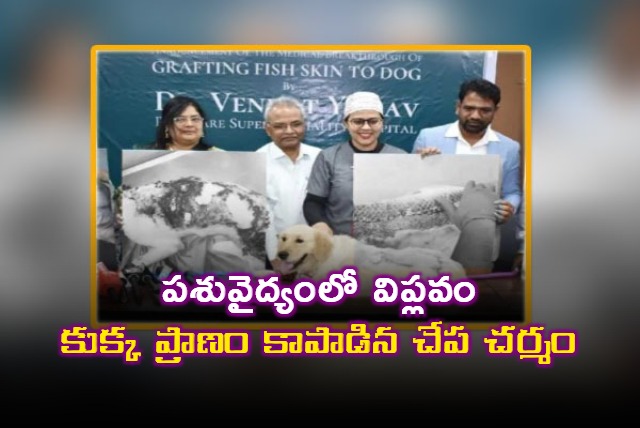 పశువైద్య రంగంలో ఓ అద్భుతం చోటుచేసుకుంది. తీవ్రమైన ఇన్ఫెక్షన్తో ప్రాణాపాయ స్థితిలో ఉన్న ఓ శునకానికి, ప్రత్యేకంగా ప్రాసెస్ చేసిన చేప చర్మాన్ని అంటుకట్టి వైద్యులు పునర్జన్మ ప్రసాదించారు. హైదరాబాద్లోని జూబ్లీహిల్స్లో ఉన్న పెట్స్ కేర్ సూపర్ స్పెషాలిటీ ఆసుపత్రిలో ఈ అరుదైన శస్త్రచికిత్స విజయవంతమైంది.