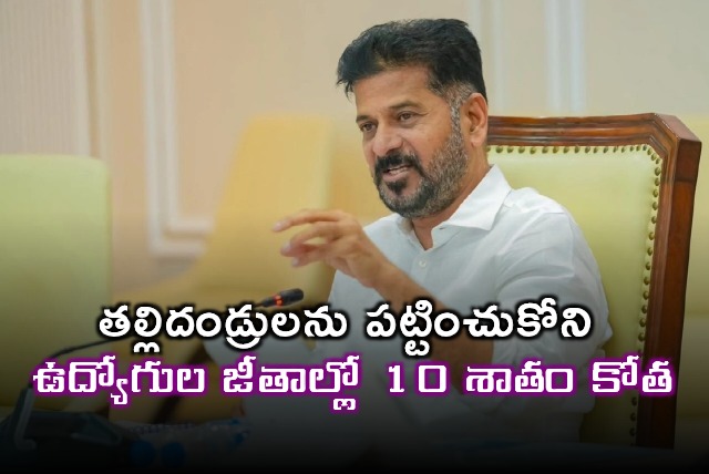 తెలంగాణ ప్రభుత్వం మరో సంచలన నిర్ణయం తీసుకుంది. రాష్ట్రంలో కన్న తల్లిదండ్రుల బాగోగులు చూడని ప్రభుత్వ ఉద్యోగులపై కఠినంగా వ్యవహరించాలని నిర్ణయించింది. అలాంటి ఉద్యోగుల జీతంలో 10 శాతం కోత విధించి, ఆ మొత్తాన్ని నేరుగా వారి తల్లిదండ్రుల బ్యాంకు ఖాతాల్లో జమ చేసేలా త్వరలోనే ఒక ప్రత్యేక చట్టం తీసుకురాబోతున్నట్లు ముఖ్యమంత్రి రేవంత్ రెడ్డి ప్రకటించారు. వృద్ధులైన తల్లిదండ్రులు తమ పిల్లలపై చేసే ఫిర్యాదులను తీవ్రంగా పరిగణించాలని ఆయన అధికారులను ఆదేశించారు.