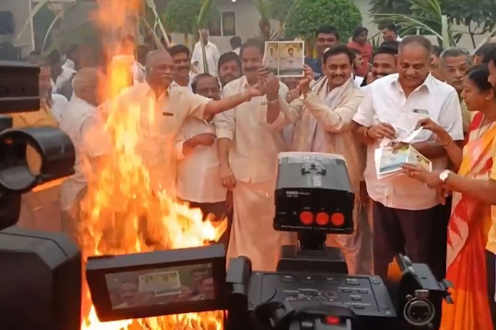 Kesineni Chinni Burns Jagan Photo Passbooks in Bhogi Fire