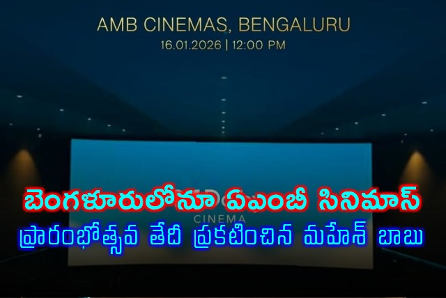 ఈ విషయాన్ని మహేశ్ బాబు తన సోషల్ మీడియా ఖాతా ద్వారా అభిమానులతో పంచుకున్నారు. "జనవరి 16న బెంగళూరులో ఏఎంబీ సినిమాస్ తలుపులు అధికారికంగా తెరుచుకోనున్నాయి సౌత్ ఇండియాలోనే తొలి డాల్బీ సినిమా అనుభూతిని ఇక్కడ అందించబోతున్నాం. దీనిని సాకారం చేసేందుకు అసాధారణమైన కృషి చేసిన టీమ్ ఏఎంబీకి నా అభినందనలు. త్వరలోనే 'నమ్మ బెంగళూరు'లో అందరినీ కలుస్తాను" అని తన పోస్టులో పేర్కొన్నారు.