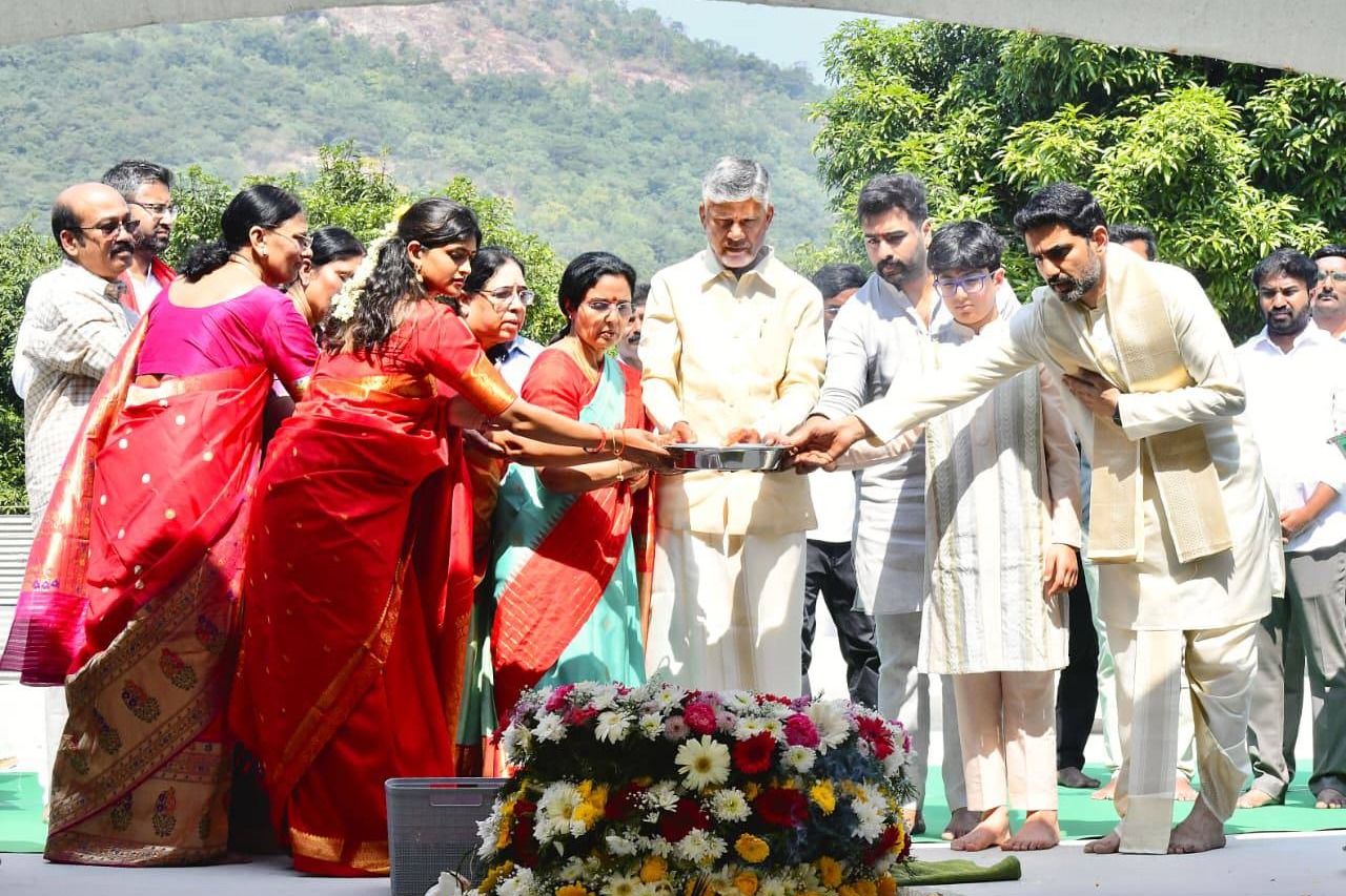పండుగ సందర్భంగా, ముఖ్యమంత్రి తన కుటుంబ సభ్యులతో కలిసి మొదట గ్రామదేవత దొడ్డి గంగమ్మ ఆలయాన్ని, ఆ తర్వాత తమ కులదేవత నాగాలమ్మ ఆలయాన్ని సందర్శించి ప్రత్యేక పూజలు నిర్వహించారు. ఈ సందర్భంగా వారి నివాసానికి విచ్చేసిన టీటీడీ వేద పండితులు చంద్రబాబు దంపతులకు, కుటుంబ సభ్యులకు వేదాశీర్వచనాలు అందించారు.