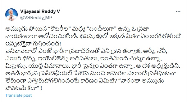 విజయసాయిరెడ్డి ట్వీట్: విజయసాయిరెడ్డి తన తాజా ట్వీట్ ను వైసీపీ కోటరీని పరోక్షంగా ప్రస్తావిస్తూ చేశారు.