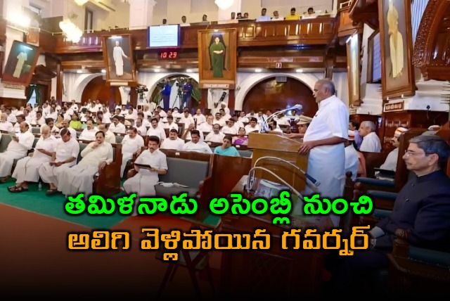 తమిళనాడు అసెంబ్లీలో మరో వివాదం రేగింది. అసెంబ్లీ సమావేశాలను ప్రారంభించి ప్రసంగించాల్సిన గవర్నర్ మధ్యలోనే వెళ్లిపోయారు. సభలో జాతీయ గీతం పాడాలని కోరినా సభాపతి వినిపించుకోలేదని లోక్భవన్ వెల్లడించింది. దేశంలోని అన్ని శాసన సభలలో గవర్నర్ ప్రసంగానికి ముందు జాతీయ గీతాలాపన చేయడం సంప్రదాయంగా కొనసాగుతోందని, స్టాలిన్ సర్కారు మాత్రం ఈ సంప్రదాయాన్ని బ్రేక్ చేస్తోందని పేర్కొంది. దీనికి నిరసనగా గవర్నర్ ఆర్.ఎన్.రవి అసెంబ్లీ నుంచి వాకౌట్ చేసినట్లు సమాచారం.