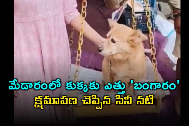 Tina Sravya: మేడారంలో కుక్కకు ఎత్తు 'బంగారం'... క్షమాపణ చెప్పిన సినీ నటి