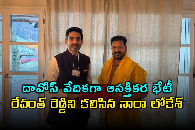 స్విట్జర్లాండ్లోని దావోస్ వేదికగా తెలుగు రాష్ట్రాల నేతల మధ్య స్నేహపూర్వక భేటీ జరిగింది. తెలంగాణ ముఖ్యమంత్రి రేవంత్ రెడ్డితో ఆంధ్రప్రదేశ్ విద్య, ఐటీ శాఖల మంత్రి నారా లోకేశ్ సమావేశమయ్యారు. ఈ సందర్భంగా ఇరు రాష్ట్రాల అభివృద్ధి, ప్రగతి ప్రణాళికలపై ఇరువురు నేతలు ఫలవంతమైన చర్చలు జరిపారు. పరస్పర సహకారంతోనే తెలుగు రాష్ట్రాల సమగ్రాభివృద్ధి సాధ్యమని ఇద్దరూ ఏకాభిప్రాయం వ్యక్తం చేశారు.