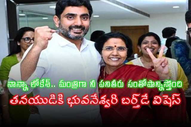 'ఎక్స్' (ట్విట్టర్) వేదికగా లోకేశ్కు భువనేశ్వరి పుట్టినరోజు శుభాకాంక్షలు తెలిపారు. ఈ సందర్భంగా ఆమె ఓ భావోద్వేగ పోస్ట్ పెట్టారు. "కొడుకు ఎంత ఎదిగినా తల్లికి మాత్రం బిడ్డగానే కనిపిస్తాడు అంటారు. లోకేశ్ను చూస్తున్నప్పుడు కూడా నిన్న మొన్నటి వరకు నా చేతుల్లో ఆడుకున్న పిల్లాడేనా అనిపిస్తుంది. ఆ పిల్లాడే ఇప్పుడు మంత్రిగా బాగా పనిచేసి అందరి ప్రశంసలు అందుకుంటుంటే ఎంతో సంతోషంగా ఉంటుంది. నాన్నా లోకేశ్... నీకు పుట్టినరోజు శుభాకాంక్షలు. ఇలాంటి మరెన్నో పుట్టిన రోజులను నువ్వు ఆనందంగా, ఆరోగ్యంగా జరుపుకోవాలని మనసారా ఆశీర్వదిస్తున్నాను" అని భువనేశ్వరి తన పోస్టులో పేర్కొన్నారు. తల్లిగా తన కుమారుడి ఎదుగుదలను చూసి భువనేశ్వరి పడుతున్న ఆనందం ఈ పోస్టులో స్పష్టంగా కనిపిస్తోందని నెటిజన్లు కామెంట్లు పెడుతున్నారు.