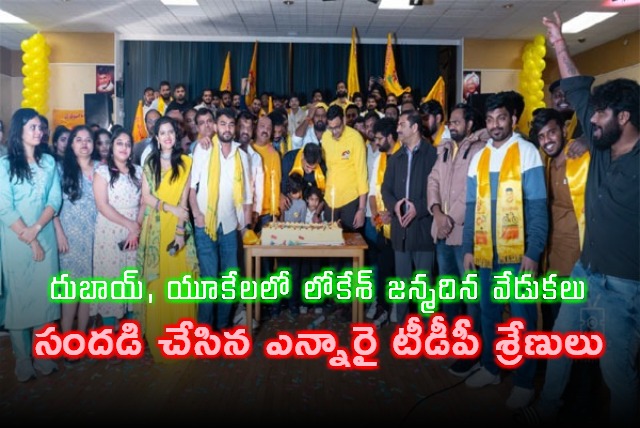 ఆంధ్రప్రదేశ్ రాష్ట్ర ఐటీ, విద్యాశాఖ మంత్రి, తెలుగుదేశం పార్టీ జాతీయ ప్రధాన కార్యదర్శి నారా లోకేశ్ జన్మదిన వేడుకలు విదేశాల్లోనూ ఘనంగా జరిగాయి. యునైటెడ్ అరబ్ ఎమిరేట్స్ (యూఏఈ), యునైటెడ్ కింగ్డమ్ (యూకే)లలోని తెలుగుదేశం పార్టీ అభిమానులు, ఎన్నారై టీడీపీ నాయకులు ఈ సంబరాలను ఉత్సాహంగా నిర్వహించారు. లోకేశ్ నాయకత్వాన్ని కొనియాడుతూ, ఆయనకు జన్మదిన శుభాకాంక్షలు తెలియజేశారు.