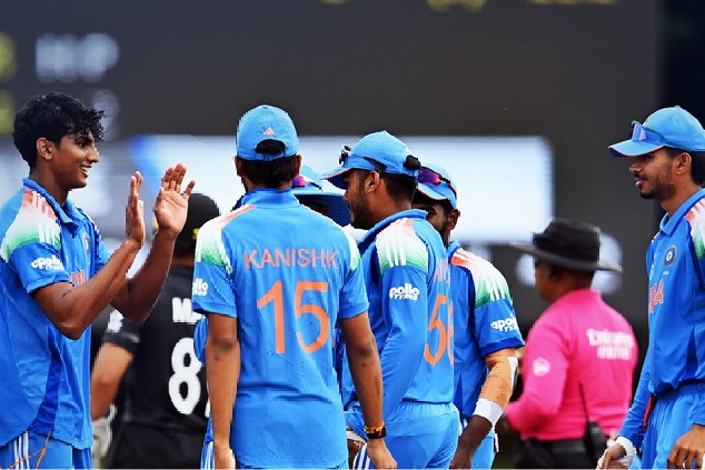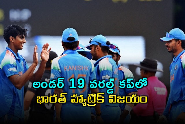 అండర్ 19 ప్రపంచ కప్‌లో భారత యువ జట్టు జైత్రయాత్ర కొనసాగిస్తోంది. గ్రూప్-బిలో భాగంగా శనివారం న్యూజిలాండ్‌తో జరిగిన మ్యాచ్‌లో 7 వికెట్ల తేడాతో ఘన విజయం సాధించింది. ఈ గెలుపుతో టోర్నీలో యంగ్ ఇండియా హ్యాట్రిక్ విజయాలను నమోదు చేసి, గ్రూప్ టాపర్‌గా నిలిచింది. తద్వారా సూపర్ సిక్స్ బెర్తును ఖాయం చేసకుంది. వర్షం కారణంగా ఈ మ్యాచ్‌ను పలుమార్లు కుదించాల్సి వచ్చింది.