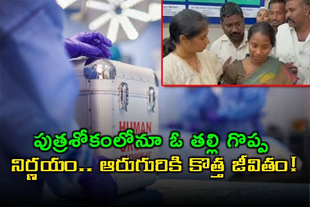 తీరని పుత్రశోకంలోనూ ఓ తల్లి గొప్ప మనసు చాటుకున్నారు. రోడ్డు ప్రమాదంలో బ్రెయిన్ డెడ్ అయిన తన కుమారుడి అవయవాలను దానం చేసి, ఆరుగురి జీవితాల్లో వెలుగులు నింపారు. గుంటూరు జిల్లాలో చోటుచేసుకున్న ఈ సంఘటన మానవత్వానికి నిలువుటద్దంగా నిలిచింది.