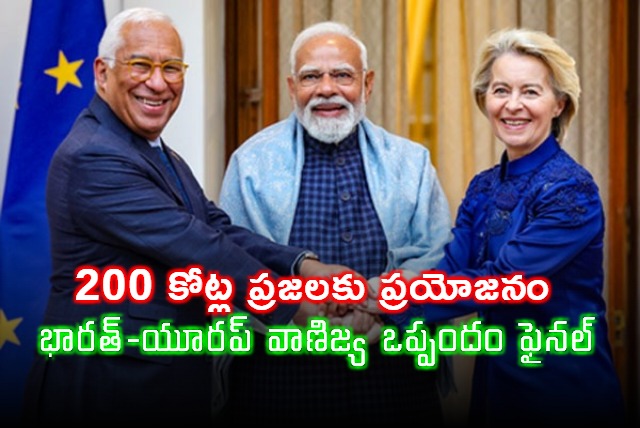 భారత్, యూరోపియన్ యూనియన్ (ఈయూ) మధ్య చారిత్రక స్వేచ్ఛా వాణిజ్య ఒప్పందం (ఎఫ్‌టీఏ) ఖరారైంది. 18 ఏళ్ల సుదీర్ఘ చర్చల తర్వాత కుదిరిన ఈ ఒప్పందాన్ని యూరోపియన్ కమిషన్ అధ్యక్షురాలు ఉర్సులా వాన్ డెర్ లేయెన్ 'మదర్ ఆఫ్ ఆల్ డీల్స్'గా అభివర్ణించారు. ఈరోజు న్యూఢిల్లీలోని హైదరాబాద్ హౌస్‌లో ప్రధాని నరేంద్ర మోదీ, ఈయూ కమిషన్ అధ్యక్షురాలు ఉర్సులా, కౌన్సిల్ ప్రెసిడెంట్ ఆంటోనియో కోస్టాలతో జరిగిన 16వ శిఖరాగ్ర సమావేశంలో ఈ ఒప్పందాన్ని అధికారికంగా ఖరారు చేశారు.