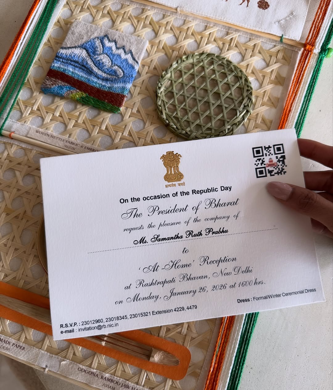 ఈ కార్యక్రమానికి సమంత లేత పచ్చరంగు చీరలో బంగారు అంచులతో ఎంతో సంప్రదాయబద్ధంగా హాజరయ్యారు. బంగారు చోకర్ నెక్లెస్, చెవిపోగులతో తేలికపాటి మేకప్లో ప్రత్యేక ఆకర్షణగా నిలిచారు. రాష్ట్రపతి భవన్లో దిగిన పలు ఫొటోలను, విందుకు సంబంధించిన ఆహ్వాన పత్రాన్ని కూడా ఆమె షేర్ చేశారు. ఈ విందులో ప్రధాని నరేంద్ర మోదీ, ఉపరాష్ట్రపతి సి.పి. రాధాకృష్ణన్ వంటి పలువురు ప్రముఖులు పాల్గొన్నారు.