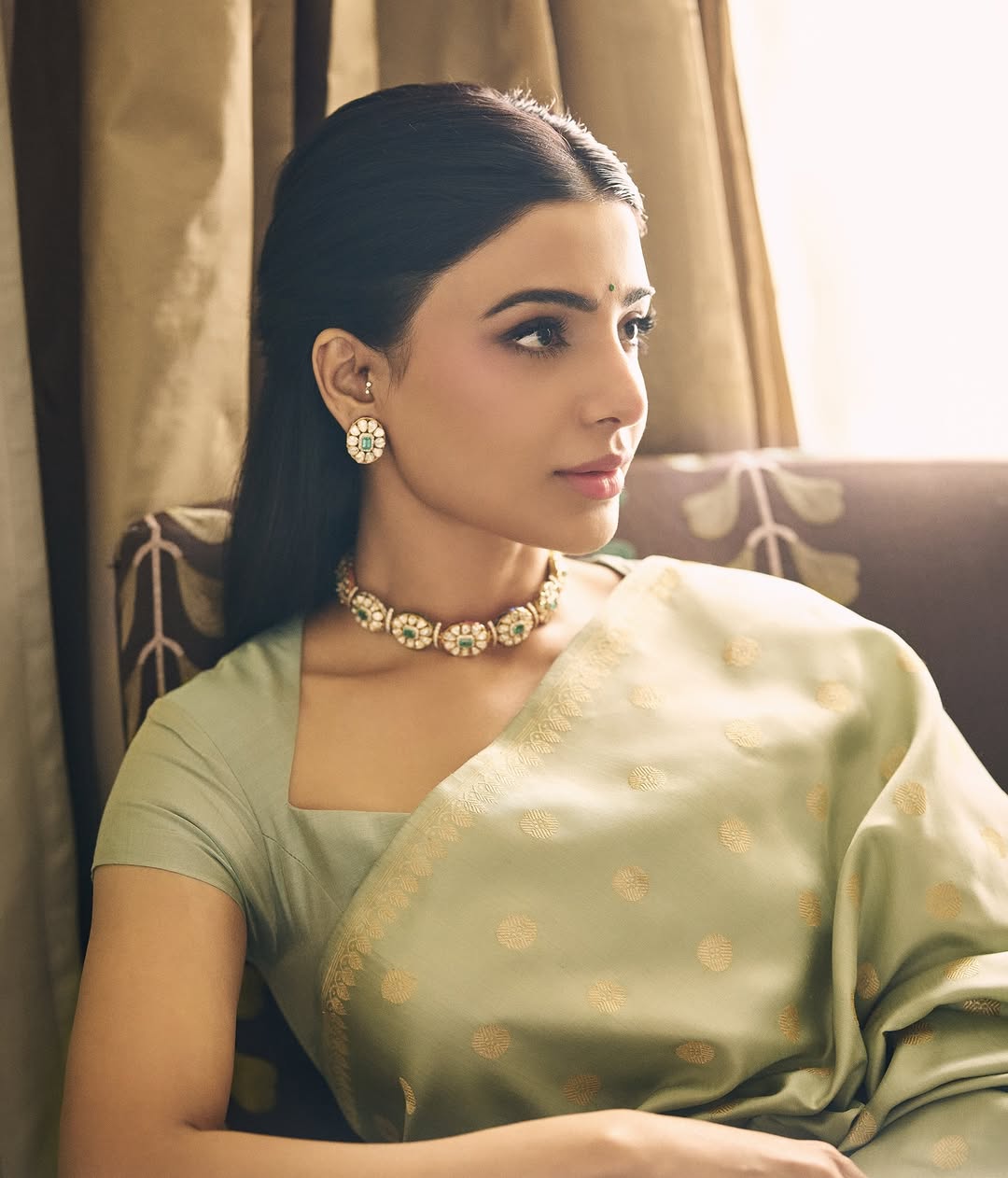- లేత పచ్చరంగు చీరలో సంప్రదాయబద్ధంగా కనిపించి ప్రత్యేక ఆకర్షణగా నిలిచిన నటి