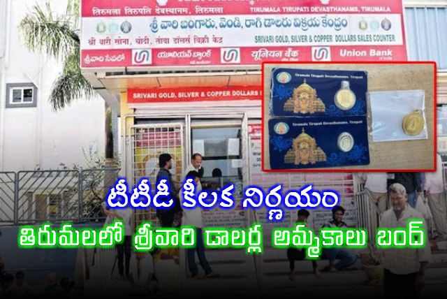 టీటీడీ కీలక నిర్ణయం తీసుకుంది. తిరుమలలో విక్రయించే శ్రీవారి బంగారం, వెండి డాలర్ల అమ్మకాలను తాత్కాలికంగా నిలిపివేసింది. దేశవ్యాప్తంగా బంగారం ధరలు విపరీతంగా పెరగడమే ఇందుకు ప్రధాన కారణం. బయట మార్కెట్ ధరలతో పోలిస్తే టీటీడీ డాలర్ల ధరలు తక్కువగా ఉండటంతో వాటిని కొనుగోలు చేసేందుకు భక్తులు ఎగబడటంతో శుక్రవారం మధ్యాహ్నం నుంచి విక్రయ కౌంటర్‌ను మూసివేశారు.