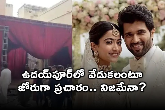 టాలీవుడ్ స్టార్ హీరో విజయ్ దేవరకొండ, నటి రష్మిక మందన్నల వివాహం గురించి గత కొద్దికాలంగా నడుస్తున్న ప్రచారానికి మళ్లీ రెక్కలొచ్చాయి. వీరిద్దరూ ఈ నెల 26న పెళ్లి చేసుకోబోతున్నారంటూ వార్తలు చక్కర్లు కొడుతున్నాయి. రాజస్థాన్‌లోని ఉదయ్‌పూర్‌లో వీరి వివాహ వేడుక జరగనుందని, ఇప్పటికే ఏర్పాట్లు కూడా మొదలయ్యాయని కథనాలు వస్తున్నాయి.