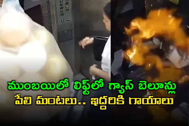 ముంబయిలో గ్యాస్‌తో నింపిన బెలూన్లు ఒక్కసారిగా పేలి లిఫ్ట్‌లో మంటలు చెలరేగిన ఘటన కలకలం రేపింది. ఈ ప్రమాదంలో ఇద్దరికి గాయాలయ్యాయి. ఘటనకు సంబంధించిన వీడియో సోషల్ మీడియాలో వైరల్‌గా మారింది.
