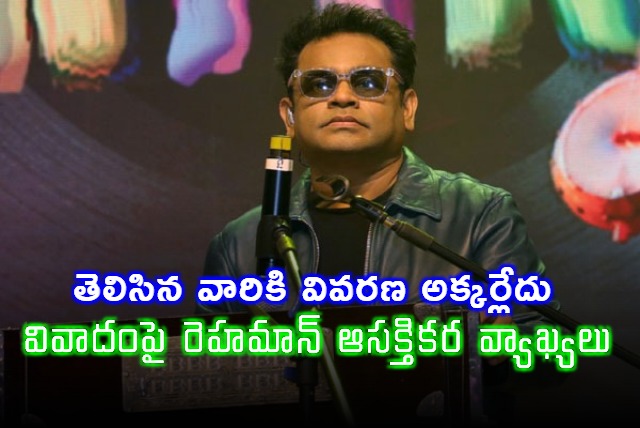 ఈ వివాదంపై గతంలోనే సోషల్ మీడియా ద్వారా స్పందించిన రెహమాన్.. ఎవరినీ బాధపెట్టే ఉద్దేశం తనకు లేదని, భారతదేశం తనకు స్ఫూర్తి అని చెప్పారు. తాజాగా పాడ్కాస్ట్ ఇంటర్వ్యూలో ఈ అంశంపై మాట్లాడుతూ, "మనమేంటో తెలిసినవారికి ప్రత్యేకంగా వివరణ ఇవ్వాల్సిన అవసరం లేదు. ఒకవేళ చెప్పినా వాళ్లు వినరు" అంటూ నవ్వుతూ బదులిచ్చారు. జీవితంలో కొన్ని విషయాల నుంచి త్వరగా బయటపడటం మంచిదని కూడా ఆయన అభిప్రాయపడ్డారు. ఆయన తాజా వ్యాఖ్యలతో ఈ వివాదం సద్దుమణుగుతుందని అభిమానులు భావిస్తున్నారు.