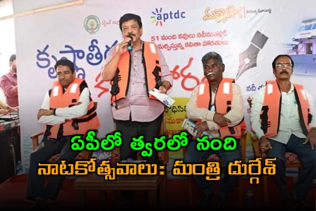 రాష్ట్రంలో త్వరలోనే నంది నాటకోత్సవాలు నిర్వహించడంతో పాటు నంది అవార్డుల ప్రదాన కార్యక్రమాన్ని చేపట్టనున్నట్లు ఏపీ పర్యాటక, సాంస్కృతిక, సినిమాటోగ్రఫీ శాఖల మంత్రి కందుల దుర్గేశ్ తెలిపారు. ఆంధ్రప్రదేశ్ పర్యాటక శాఖ, ఎన్టీఆర్ జిల్లా అధికారులు, మల్లెతీగ సాహిత్య సేవా సంస్థ ఆధ్వర్యంలో విజయవాడ పున్నమి ఘాట్ వద్ద బోధిసిరి బోటులో నిర్వహించిన ‘కృష్ణాతీరం కవితాహారం’ కార్యక్రమంలో మంత్రి ముఖ్య అతిథిగా పాల్గొని ప్రసంగించారు.