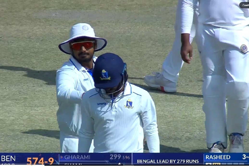 Mon 19:36 రంజీలో 299 వద్ద ఔటైన్ బెంగాల్ ఆటగాడు.. ఓదార్చిన ఆంధ్ర ఆటగాళ్లు 596 బంతుల్లో 299 పరుగులు చేసిన బెంగాల్ ఆటగాడు సుదీప్ కుమార్ ఆంధ్ర బౌలర్ షేర్ రషీద్ బౌలింగులో ఔటైన సుదీప్ కుమార్ 'బాధపడకు' అంటూ ఓదార్చిన ఆంధ్ర ఆటగాళ్లు Read full story