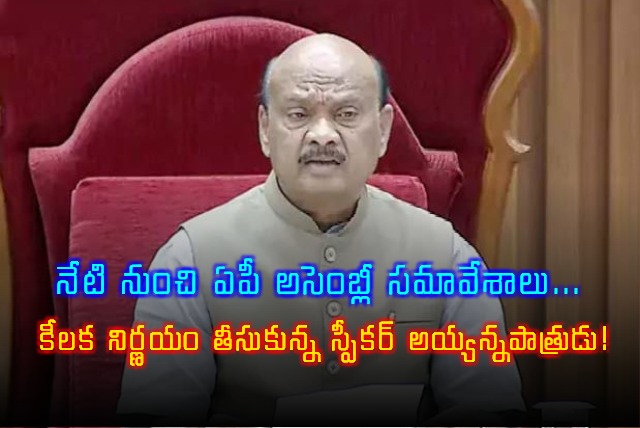 Ayyanna Patrudu: నేటి నుంచి ఏపీ అసెంబ్లీ సమావేశాలు... కీలక నిర్ణయం తీసుకున్న స్పీకర్ అయ్యన్నపాత్రుడు!