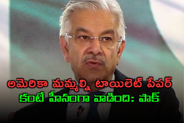 ఆఫ్ఘనిస్థాన్ విషయంలో అమెరికా తమ దేశాన్ని ఒక టిష్యూ పేపర్‌లా వాడుకుని వదిలేసిందని పాకిస్థాన్ రక్షణ మంత్రి ఖవాజా ఆసిఫ్ సంచలన వ్యాఖ్యలు చేశారు. పాకిస్థాన్ జాతీయ అసెంబ్లీలో జాతీయ భద్రత, ఉగ్రవాదంపై జరిగిన చర్చలో ఆయన మాట్లాడుతూ గతంలో తమ దేశం అనుసరించిన విదేశాంగ విధానాలపై తీవ్ర విమర్శలు చేశారు.