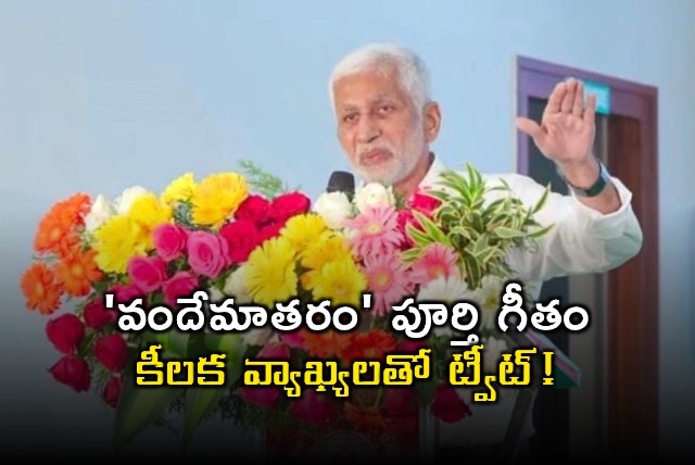 Vijayasai Reddy: 'వందేమాతరం' పూర్తి గీతాన్ని పంచుకున్న విజయసాయిరెడ్డి... కీలక వ్యాఖ్యలతో ట్వీట్!