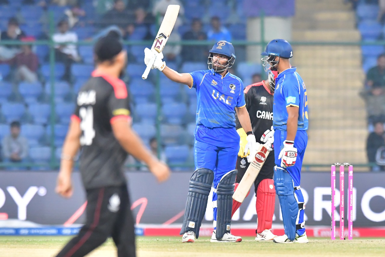 Fri 19:57 టీ20 వరల్డ్ కప్: కెనడాపై యూఏఈ థ్రిల్లింగ్ విక్టరీ T20 ప్రపంచకప్లో కెనడాపై 5 వికెట్లతో యూఏఈ గెలుపు అజేయంగా 74 పరుగులు చేసి జట్టును గెలిపించిన ఆర్యన్ష్ శర్మ 29 బంతుల్లో 51 రన్స్తో మ్యాచ్ను మలుపు తిప్పిన సోహైబ్ ఖాన్ ఒక దశలో 66/4తో కష్టాల్లో పడిన యూఏఈ ఐదో వికెట్కు 84 పరుగుల కీలక భాగస్వామ్యం Read full story