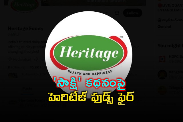 - తమపై సాక్షి పత్రికలో వచ్చిన కథనాన్ని తీవ్రంగా ఖండించిన హెరిటేజ్ ఫుడ్స్