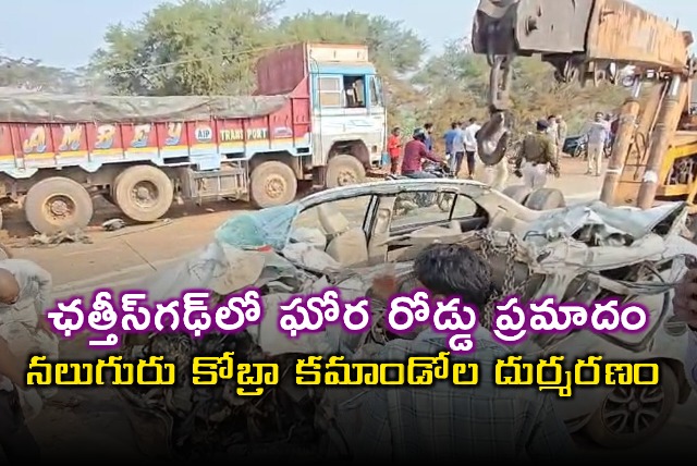 - ఛత్తీస్గఢ్లో జరిగిన రోడ్డు ప్రమాదంలో నలుగురు కోబ్రా కమాండోల మృతి చెందారు