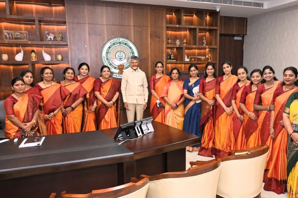 Sat 16:37 శివతత్వ చీరలు ధరించి సీఎం చంద్రబాబును కలిసిన మహిళా ప్రజాప్రతినిధులు... ఫొటోలు ఇవిగో! అసెంబ్లీలో ఆధ్యాత్మిక శోభ ఒకే రకమైన చీరల్లో కూటమి మహిళా ప్రజాప్రతినిధులు స్పీకర్ అయ్యన్న, మంత్రి పయ్యావుల, బాలకృష్ణలతోనూ భేటీ Read full story