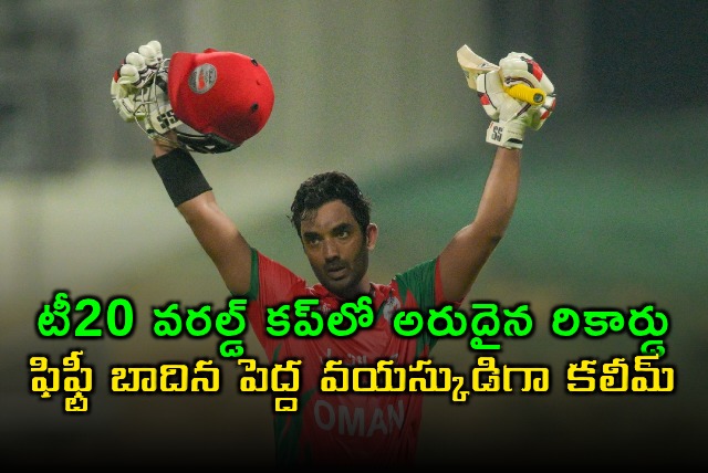 ఒమన్ ఆల్ రౌండర్ ఆమిర్ కలీమ్ టీ20 ప్రపంచకప్ చరిత్రలో తన పేరును లిఖించుకున్నాడు. టీ20 ప్రపంచకప్లో హాఫ్ సెంచరీ చేసిన అత్యంత పెద్ద వయస్కుడిగా శనివారం రికార్డు సృష్టించాడు. ఐర్లాండ్తో జరిగిన మ్యాచ్లో ఈ ఘనత సాధించాడు. ఆమిర్ కలీమ్ వయసు 44 ఏళ్ల 86 రోజులు.