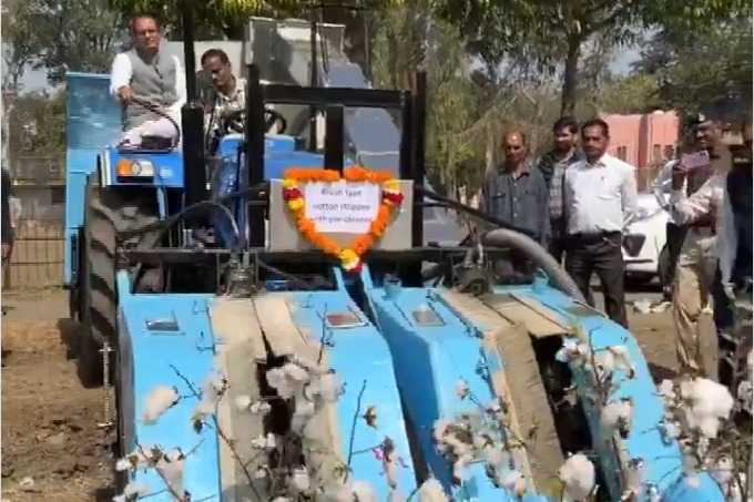 Sun 20:21 పత్తి కోతకు యంత్రం... ఎలా పనిచేస్తుందో చూడండి! పత్తి రైతులకు అందుబాటులోకి రానున్న కొత్త హార్వెస్టింగ్ మెషిన్ భోపాల్లో యంత్రాన్ని ఆవిష్కరించిన కేంద్ర మంత్రి శివరాజ్ సింగ్ చౌహాన్ కూలీల కొరతకు చెక్.. శ్రమ, సమయం, ఖర్చు ఆదా రైతుల ఆదాయం పెంచడమే లక్ష్యమన్న కేంద్రం Read full story