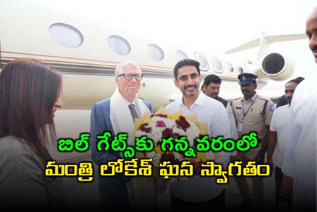 Bill Gates: బిల్ గేట్స్కు గన్నవరంలో మంత్రి లోకేశ్ ఘన స్వాగతం