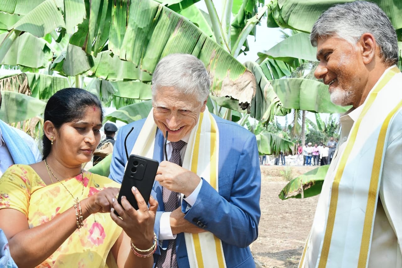 Mon 15:51 ఉండవల్లిలో అరటితోటను సందర్శించిన బిల్ గేట్స్... ఏపీ వ్యవసాయంలో టెక్నాలజీని చూసి ఆశ్చర్యం సీఎం చంద్రబాబుతో కలిసి బిల్ గేట్స్ క్షేత్రస్థాయిలో పర్యటన వ్యవసాయంలో డ్రోన్ల వినియోగం పరిశీలన టెక్నాలజీ వాడుతున్న రైతులను అభినందించిన సీఎం ఏఐతో రైతులకు సలహాలు అందిస్తున్నామని వెల్లడి Read full story