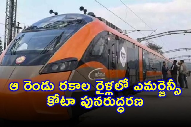 Vande Bharat: ఆ రెండు రకాల రైళ్లలో ఎమర్జెన్సీ కోటా పునరుద్ధరణ