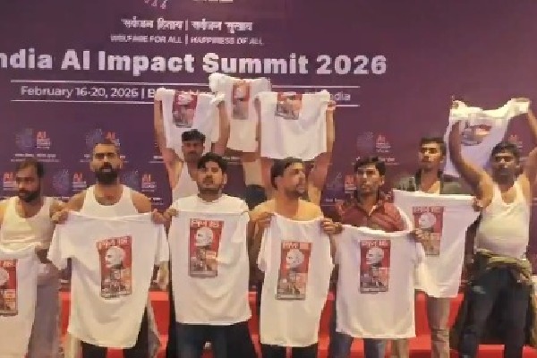 Fri 14:33 ఢిల్లీ ఏఐ సమ్మిట్లో ఉద్రిక్తత... చొక్కాలు విప్పి నిరసన తెలిపిన యూత్ కాంగ్రెస్ కార్యకర్తలు భారత్ మండపంలో ఏఐ సదస్సులో యూత్ కాంగ్రెస్ ఆందోళన చొక్కాలు విప్పి ప్రభుత్వానికి వ్యతిరేకంగా పెద్ద ఎత్తున నినాదాలు నిరుద్యోగం, ద్రవ్యోల్బణంపై ఆగ్రహం వ్యక్తం చేసిన కార్యకర్తలు నిరసనకారులను అదుపులోకి తీసుకున్న భద్రతా సిబ్బంది ఘటనపై చట్టపరమైన చర్యలు తీసుకుంటామని పోలీసుల వెల్లడి Read full story