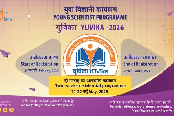 Sat 11:50 27 నుంచి ఇస్రో ‘యువికా’ రిజిస్ట్రేషన్లు యువికా-2006 రిజిస్ట్రేషన్లు ఈ నెల 27 నుంచి ప్రారంభం 8వ తరగతి పూర్తి చేసిన విద్యార్థులు అర్హులు మే నెలలో 2 వారాల పాటు రెసిడెన్షియల్ శిక్షణ Read full story
