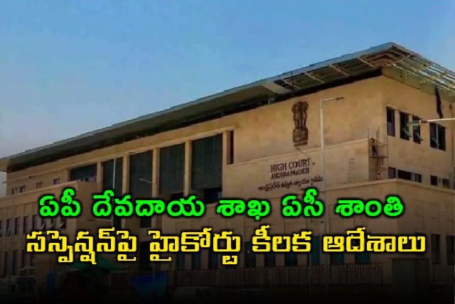 దేవదాయ శాఖ అసిస్టెంట్ కమిషనర్ (ఏసీ) కె. శాంతి తన సుదీర్ఘ సస్పెన్షన్‌ను సవాల్ చేస్తూ దాఖలు చేసిన పిటిషన్‌పై ఏపీ హైకోర్టు కీలక ఉత్తర్వులు జారీ చేసింది. తన సస్పెన్షన్‌ను ఎత్తివేసి, తిరిగి విధుల్లోకి తీసుకునేలా ఆదేశాలివ్వాలని ఆమె కోర్టును ఆశ్రయించారు. ఈ వ్యాజ్యంపై విచారణ జరిపిన న్యాయమూర్తి జస్టిస్ డి. రమేష్.. ప్రభుత్వం జారీ చేసిన జీవో నంబరు 22 ప్రకారం నిర్ణయం తీసుకోవాలని దేవదాయశాఖ ముఖ్య కార్యదర్శి, కమిషనర్‌లను ఆదేశించారు.